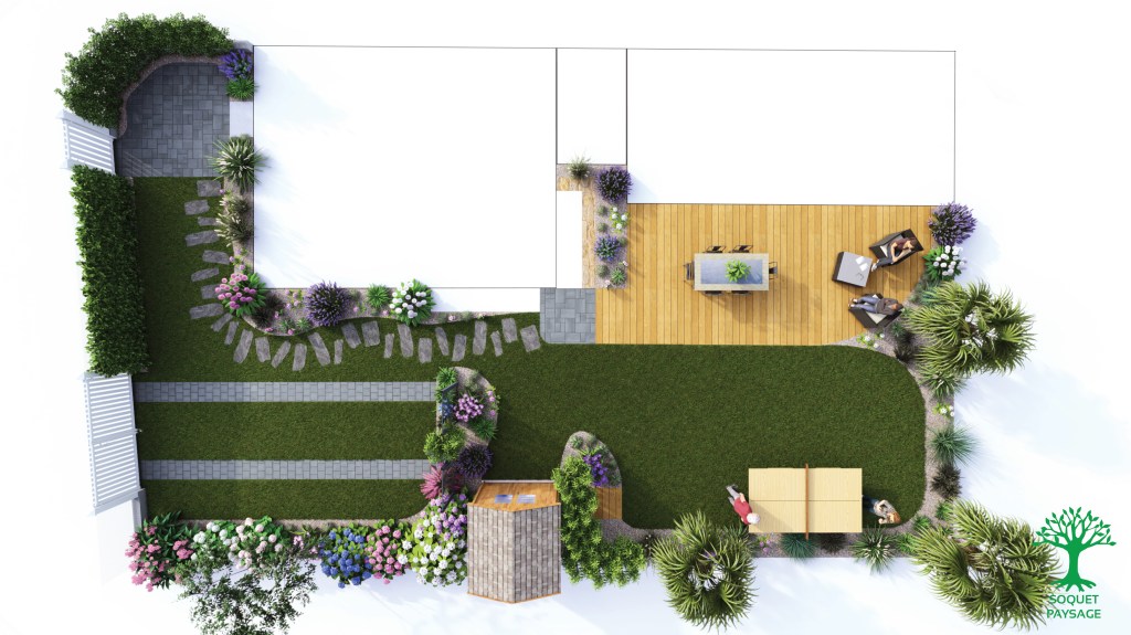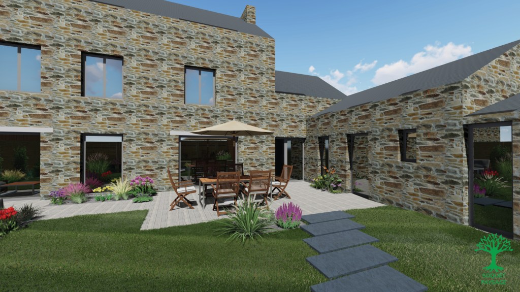 Imaginez vous vous promener au cœur de votre espace extérieur, chaque détail capturé et magnifié à travers ce montage visuel.